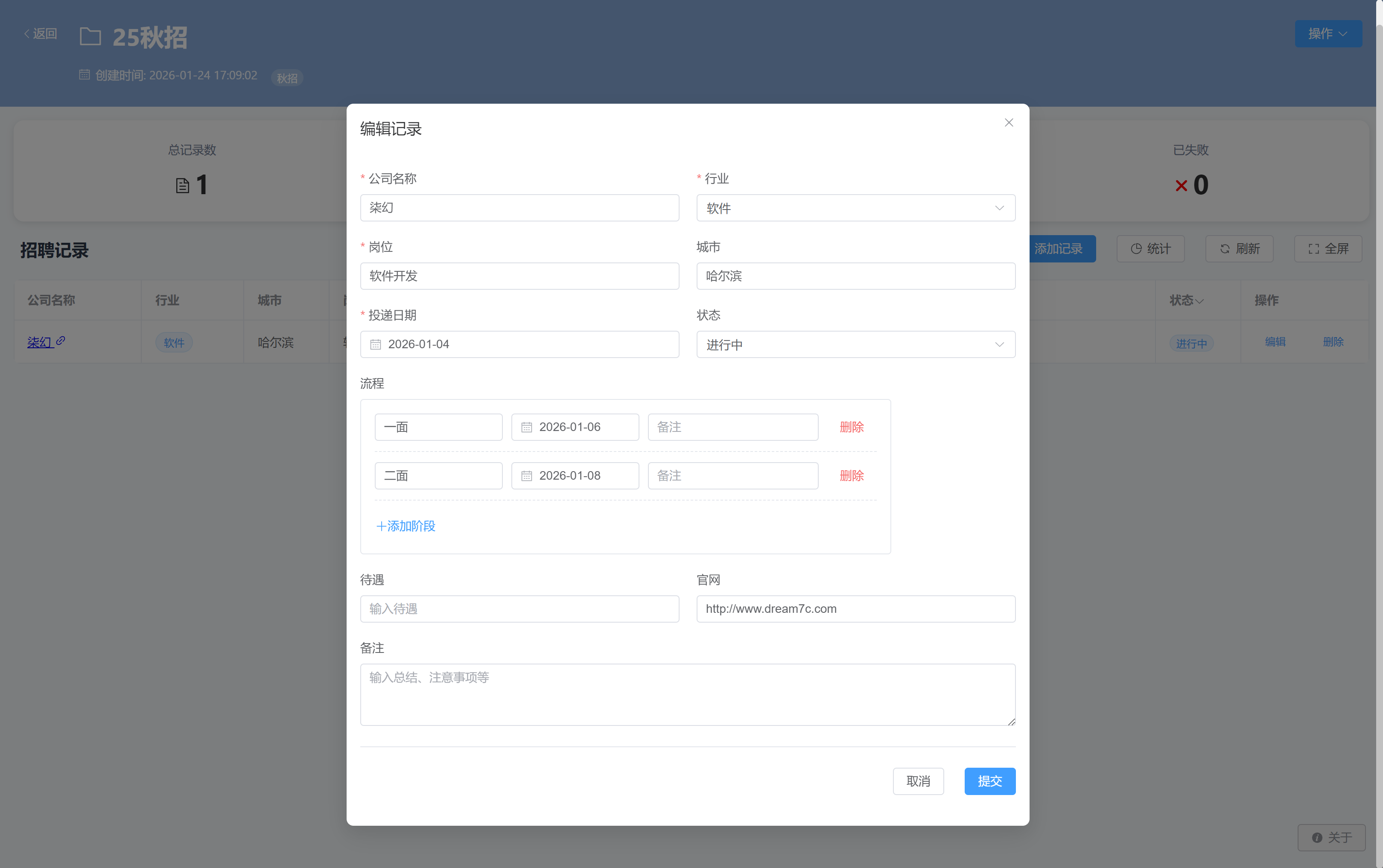 柒幻 白露 是柒幻于2026年1月推出的一款招聘记录软件,用于记录招聘进度和相关流程。